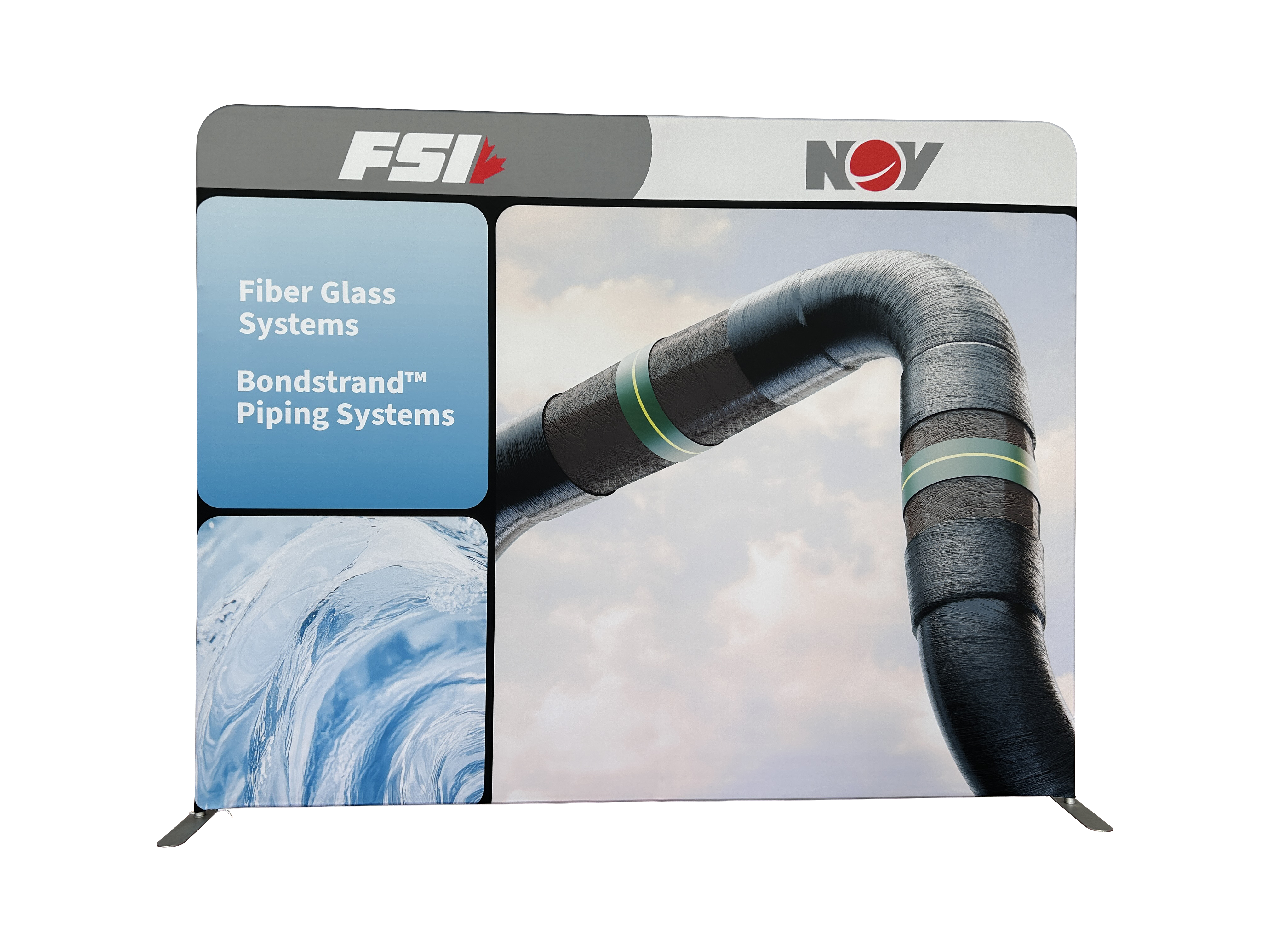 Our best selling product! This straight, 10' wide x 7.5' tall tension fabric backdrop is built with lightweight aluminium tubes and sets up in minutes, tool-free. Comes with perfectly fitted dye-sublimated fabric printed with your custom artwork. Single sided and double sided printing available. Add on one or two clip-on lights as an extra.