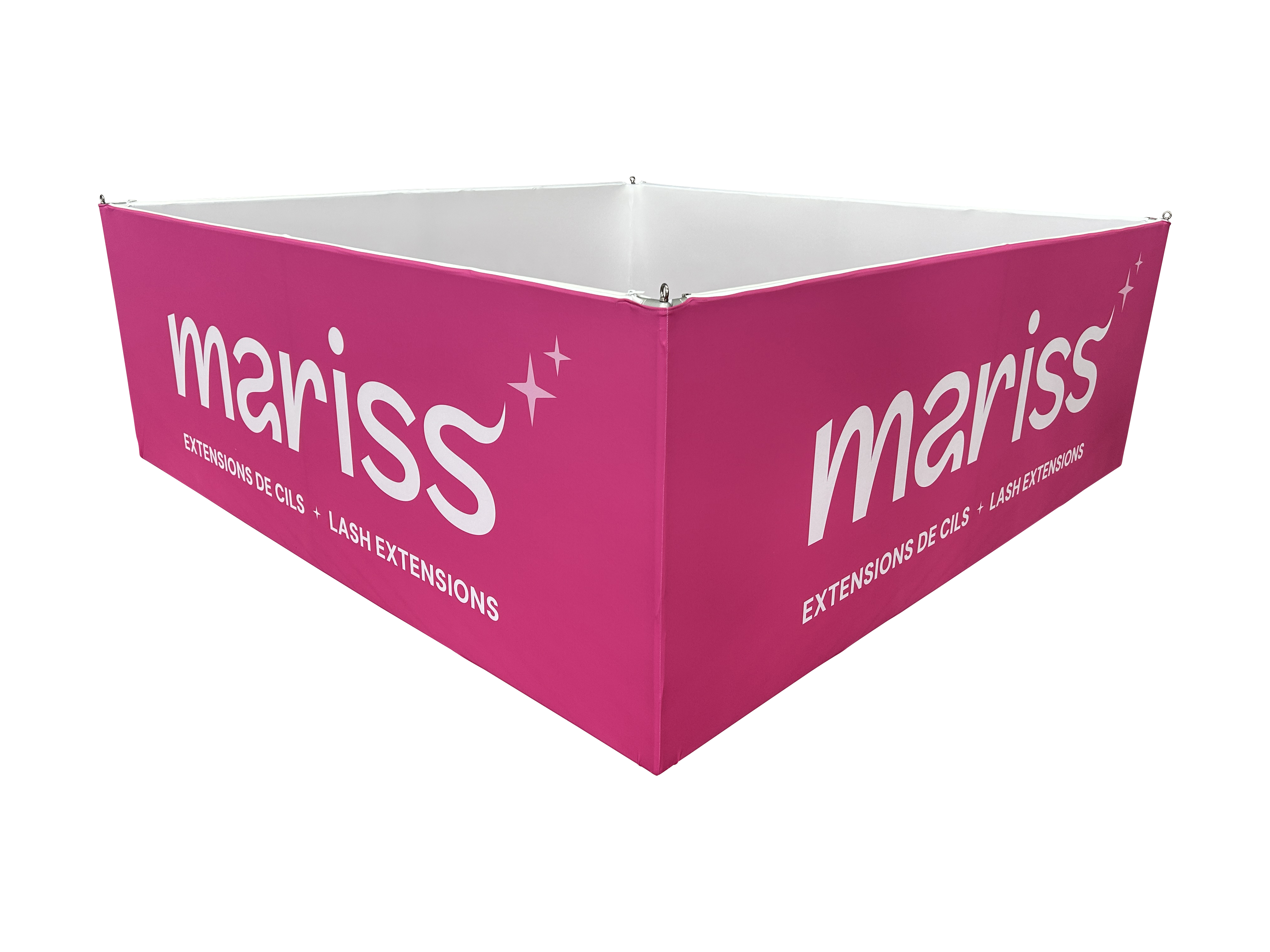 Capture attention from every angle with the square hanging banner—engineered for maximum visibility in any event space. Featuring premium dye-sublimated graphics on stretch fabric, this overhead display delivers a bold, professional presence with full 360-degree brand exposure. The complete kit includes a lightweight aluminum frame, custom-printed fabric, ceiling hanging hardware, and a soft travel case—designed for effortless transport and reliable performance.